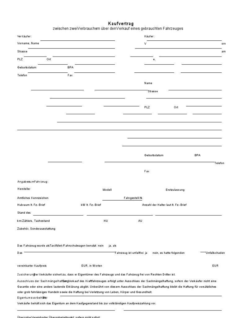 O ja / o nein bemerkungen. Ist das fahrzeug unfallfrei (nur eventuelle bagatellschäden wie z.b. Das gehört in einen ordentlichen kaufvertrag für fahrzeuge. Doch auch beim privatverkauf sollten sie einiges beachten, damit es im nachhinein für keine partei.
