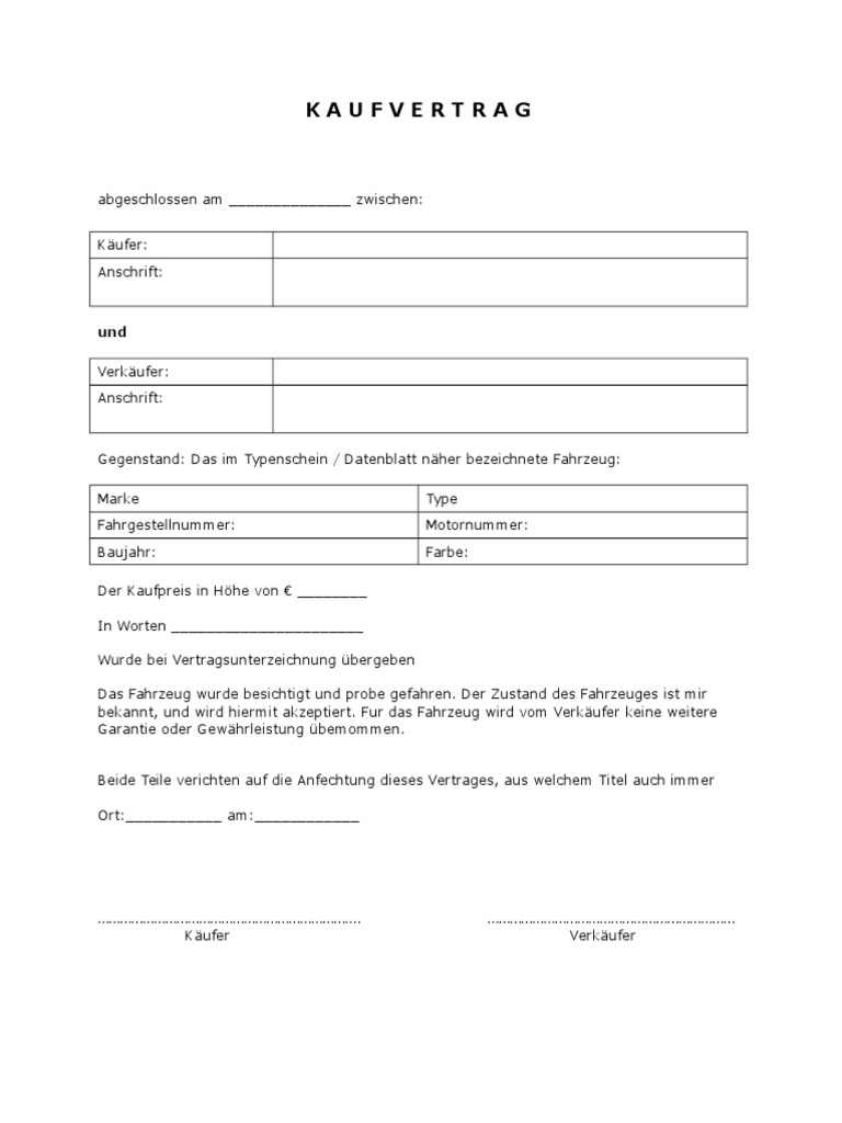 Kaufvertrag Auto Privat Gekauft Wie Gesehen Muster Kostenlos