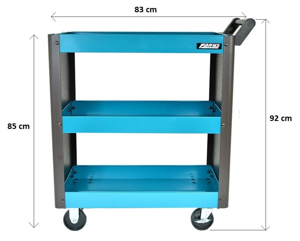 790 x 572 x 600 mm 3 ablagefächer mit gummimatte 2 lenkgriffe montagewagen wird im fertig montiertem zustand geliefert.