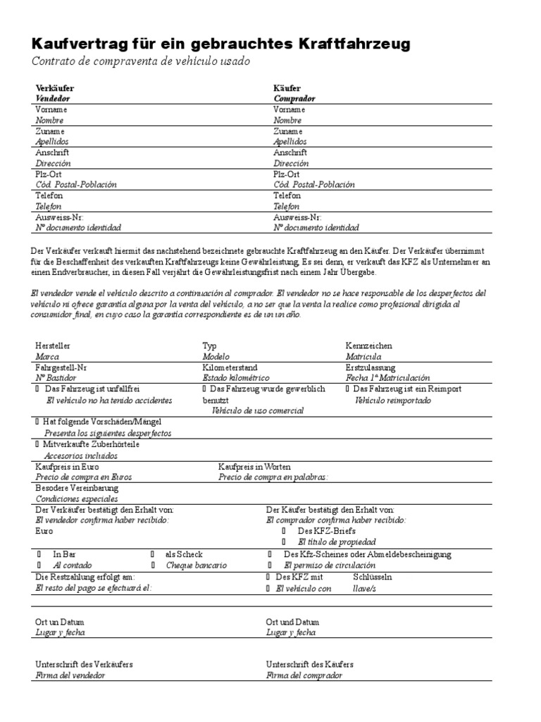 A n k a u f v e r t r a g für ein gebrauchtes kraftfahrzeug vertragsformular urheberrechtlich geschützt. Trotz aller versuche der politik, die menschen von der nutzung eines eigenen kraftfahrzeugs abzubringen, floriert der autohandel in deutschland noch immer. Bis zur tilgung des gesamt kaufpreises bleibt das fahrzeug eigentum des verkäufers. Für schadensersatzansprüche aus sachmängelhaftung, die